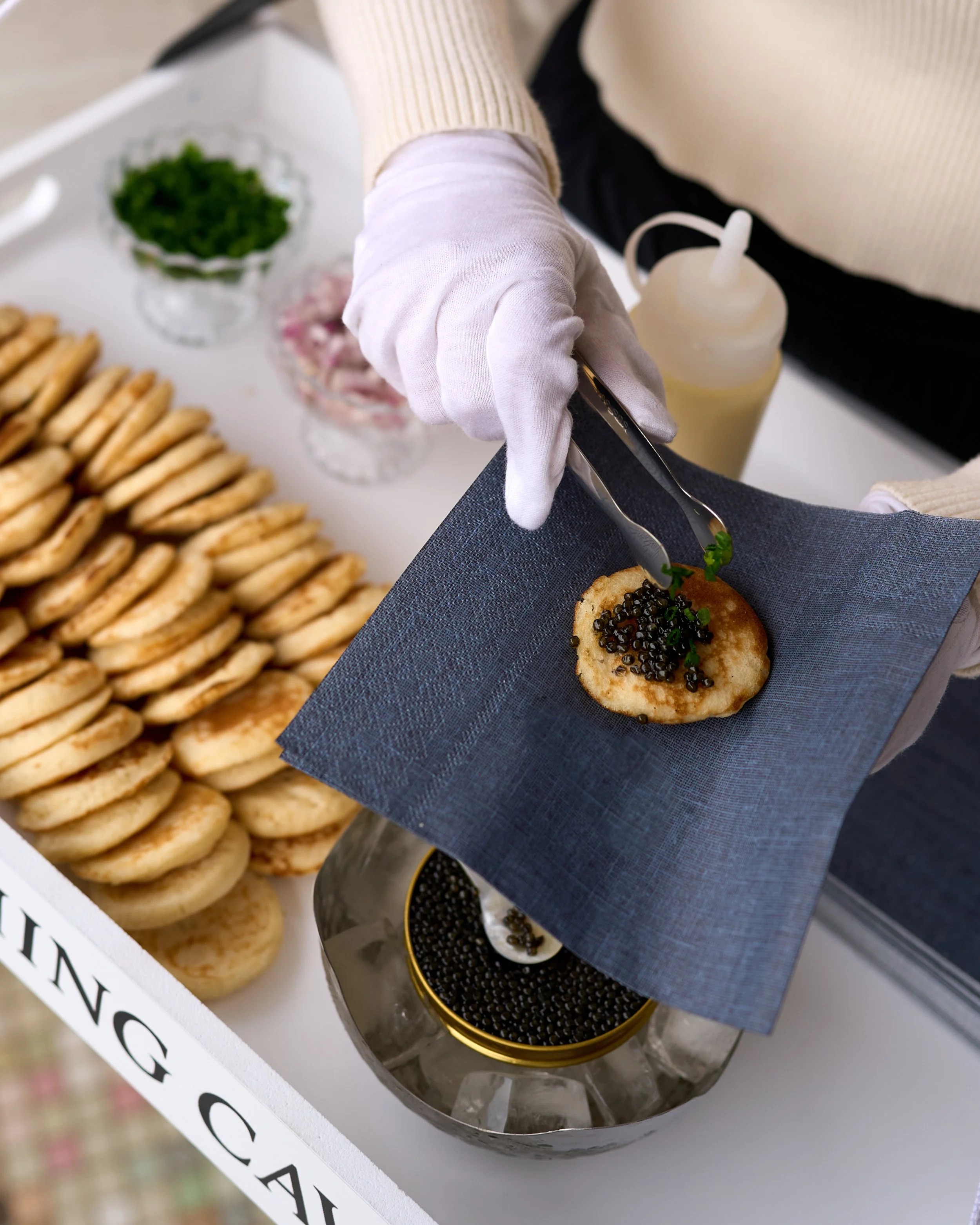 From weddings and private parties to corporate functions, we move through your event serving premium Oscietra Caviar with blinis, crème fraîche and garnishes. Effortlessly grand, all without lifting a finger.